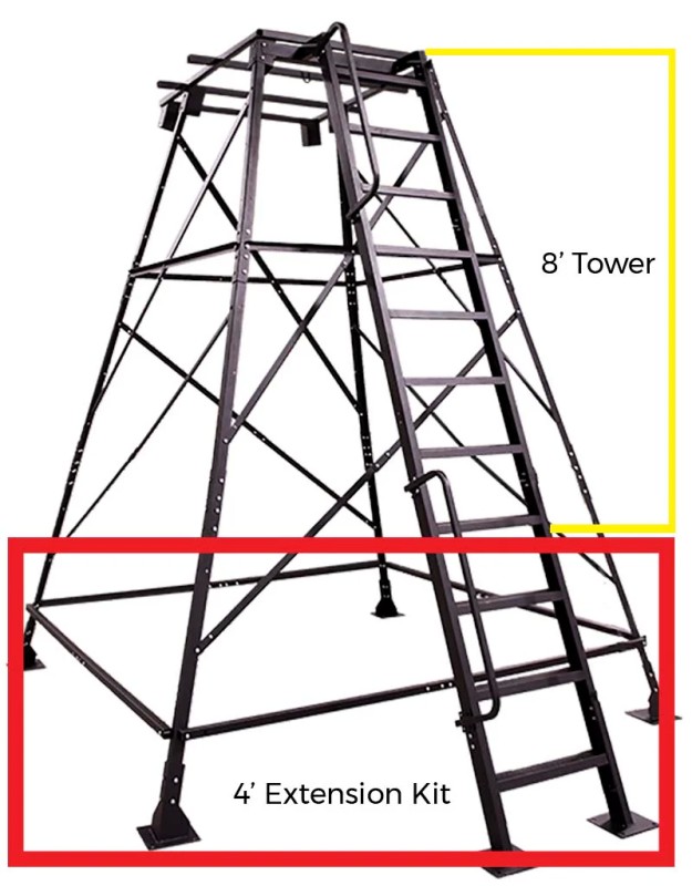 The 4' Extension Kit attaches to the 8' tower to create a 12' tower.