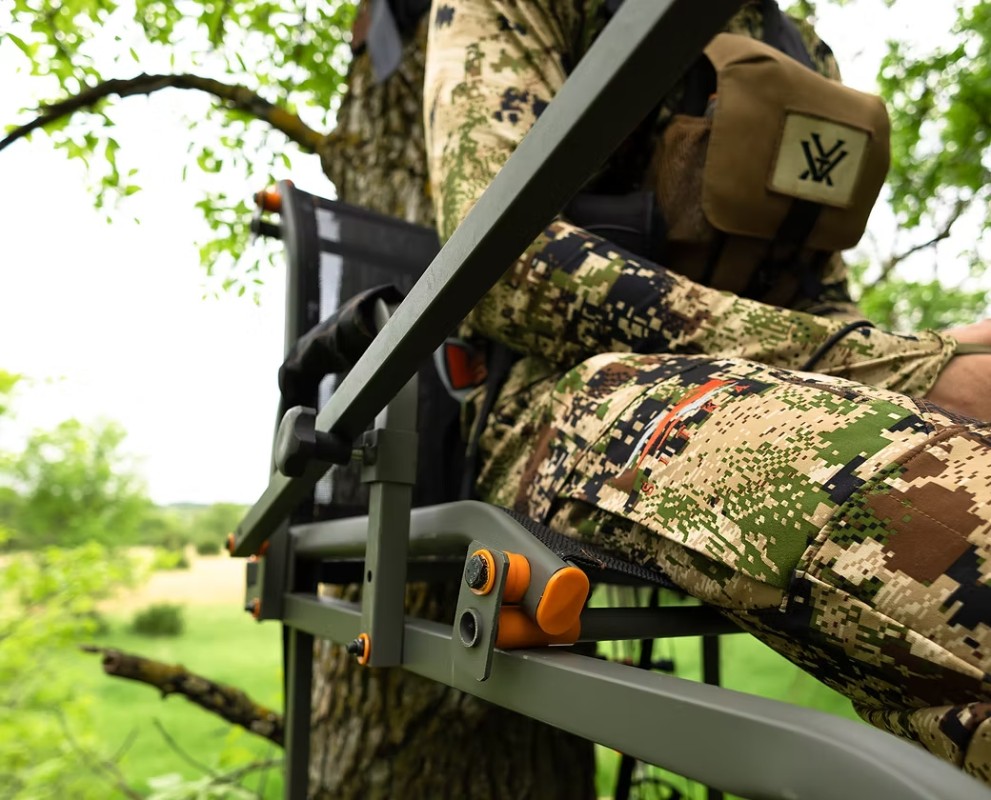 Just arrived! Introducing the new Trezz L1 Single-Man Ladderstand by Radix Hunting. With a 20' height to the shooting rest, a very durable and sturdy foot platform, and an ergonomic seat and backrest, this ladderstand is bound to leave you comfortable hunting from above. The powder-coated steel design is meant to last in the elements season to season. Having a 300lb. weight-capacity rating allows for a hunter and more than all of his gear to ascend with certainty. Take to the deer woods with the Radix Hunting Trezz L1 Single-Man Ladderstand this season and rule the wild!