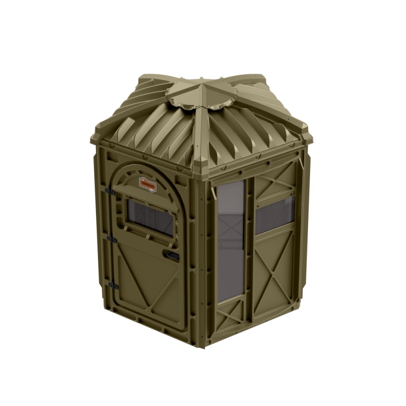360° Visibility & Weather Protection: Gain an edge with four full-view shooting ports that offer complete 360° visibility and tinted plexiglass windows for concealment. Formed window awnings and a full-length living window hinge protect your Blind interior from rain and snow.